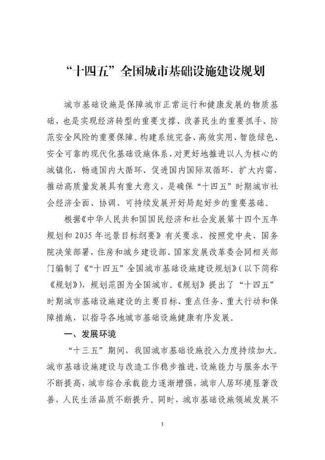 住建部、發(fā)改委印發(fā)實施《“十四五”全國城市基礎(chǔ)設(shè)施建設(shè)規(guī)劃》