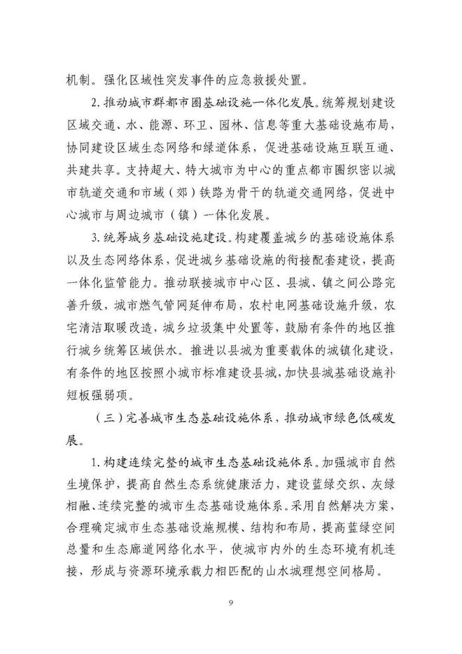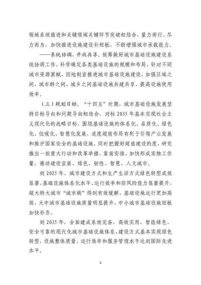 《規(guī)劃》圍繞構(gòu)建系統(tǒng)完備、高效實用、智能綠色、安全可靠的現(xiàn)代化基礎(chǔ)設(shè)施體系,提出4方面重點任務(wù)。一是推進(jìn)城市基礎(chǔ)設(shè)施體系化建設(shè),增強(qiáng)城市安全韌性能力。二是推動城市基礎(chǔ)設(shè)施共建共享,促進(jìn)形成區(qū)域與城鄉(xiāng)協(xié)調(diào)發(fā)展新格局。三是完善城市生態(tài)基礎(chǔ)設(shè)施體系,推動城市綠色低碳發(fā)展。四是加快新型城市基礎(chǔ)設(shè)施建設(shè),推進(jìn)城市智慧化轉(zhuǎn)型發(fā)展。