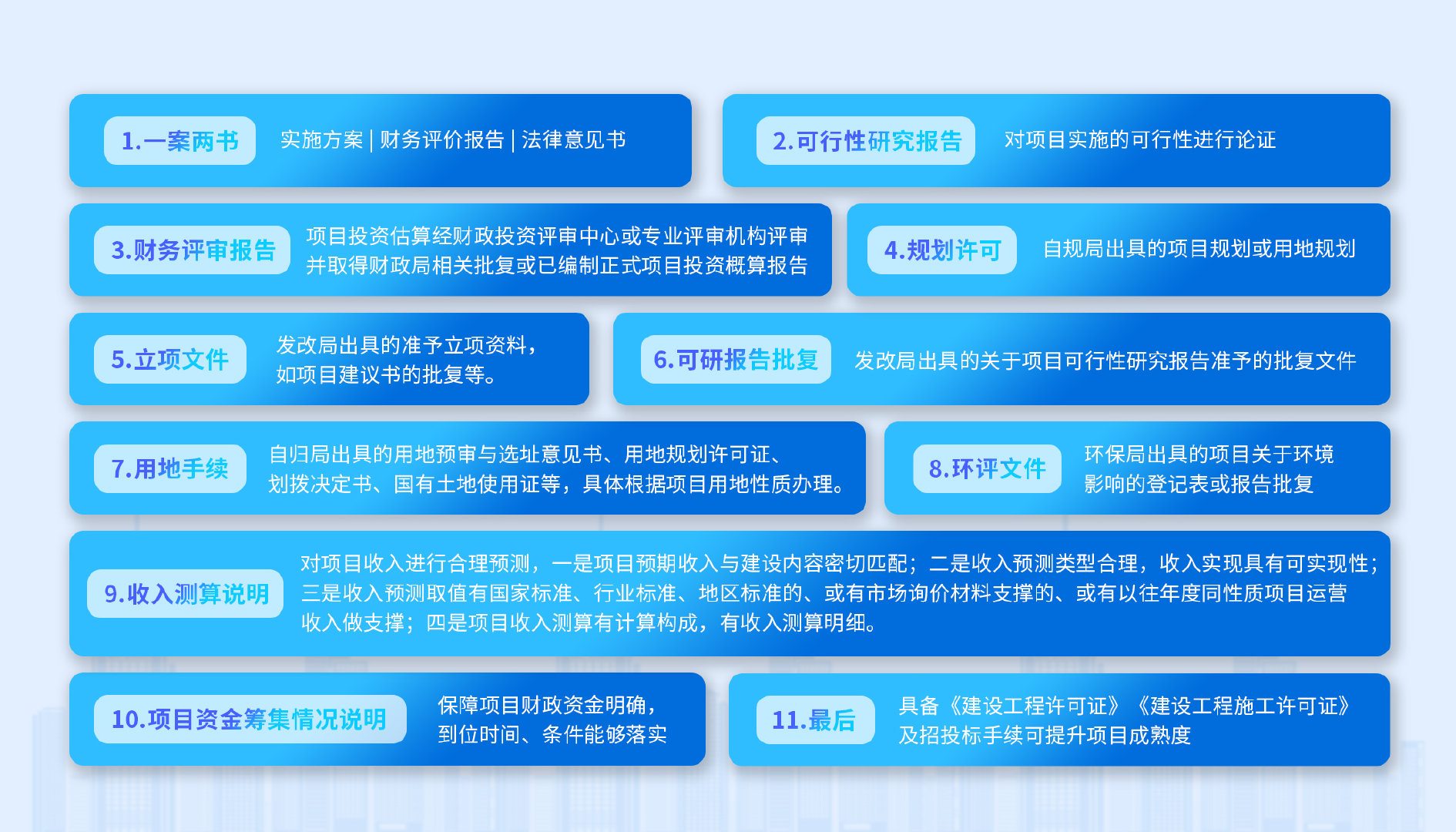 一是由專業(yè)機構(gòu)撰寫的項目實施方案(具體包括項目概況、投資測算、收益測算、平衡分析和測算附表),切忌方案強行平衡;