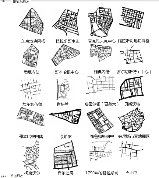 另一些分類法模式側(cè)重于城市街道的形態(tài)學(xué),馬歇爾在《街道與形態(tài)》里對此有詳細(xì)論述: