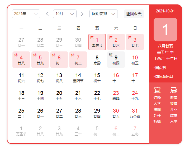 根據(jù)《國務(wù)院辦公廳關(guān)于2021年部分節(jié)假日安排的通知》精神,并結(jié)合公司實際情況,經(jīng)研究決定,2021年國慶放假安排如下: