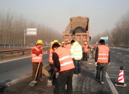 路面表面層產(chǎn)生坑槽原因:由于瀝青路面上面層混合料局部空隙率較大、瀝青與石料間的粘附力不強(qiáng),路表水(雨水或雪水)進(jìn)入并滯留在表面層瀝青混合料中,在行車荷載尤其是重載車輛的不斷作用下,產(chǎn)生的動(dòng)水壓力使表面層的瀝青從石料表面剝落下來(lái),瀝青路面便會(huì)出現(xiàn)局部松散破損。散落的石料被車輪甩出,路面自上而下逐漸會(huì)形成坑槽。