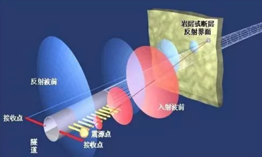 利用地震波在不均勻地質(zhì)體中產(chǎn)生的反射波特性來預(yù)報隧洞掌子面前方及周圍臨近區(qū)域的地質(zhì)情況,可以檢測出掌子面前方巖性的變化,可以在鉆爆法或TBM開挖的隧道中使用,而不必接近掌子面。該法有效預(yù)報距離100~200m。