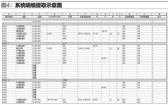 而在BIM技術(shù)軟件的應(yīng)用中,僅通過其中的一款Revit軟件便能減輕設(shè)計人員的工作量,且能快速提取設(shè)計所傳遞的相關(guān)信息,即在平面布局完成的同時便可提取相關(guān)零部件的參數(shù)及數(shù)量信息(如圖4),便于快速生產(chǎn)的組織;同時,提高了各工程材料預算的準確性,減少冗余采購量,節(jié)省資金。
