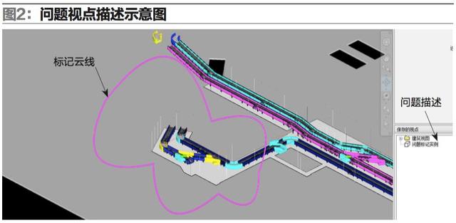 4.參照后的項目文件中具有尺寸量取、問題視點標記等功能,方便問題內(nèi)容的傳遞,且在復雜系統(tǒng)中能快速切換到標心的視圖中(如圖2)。