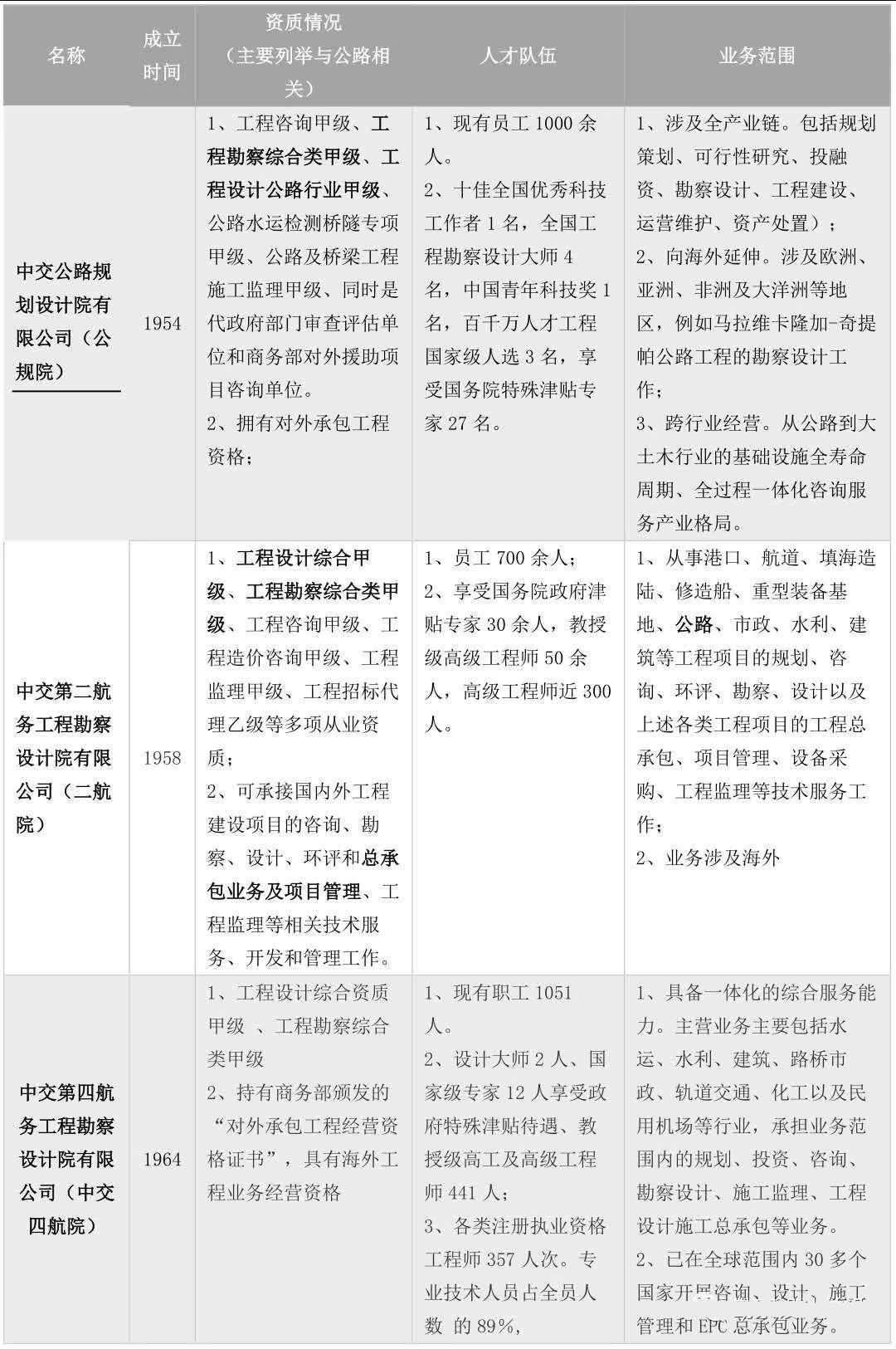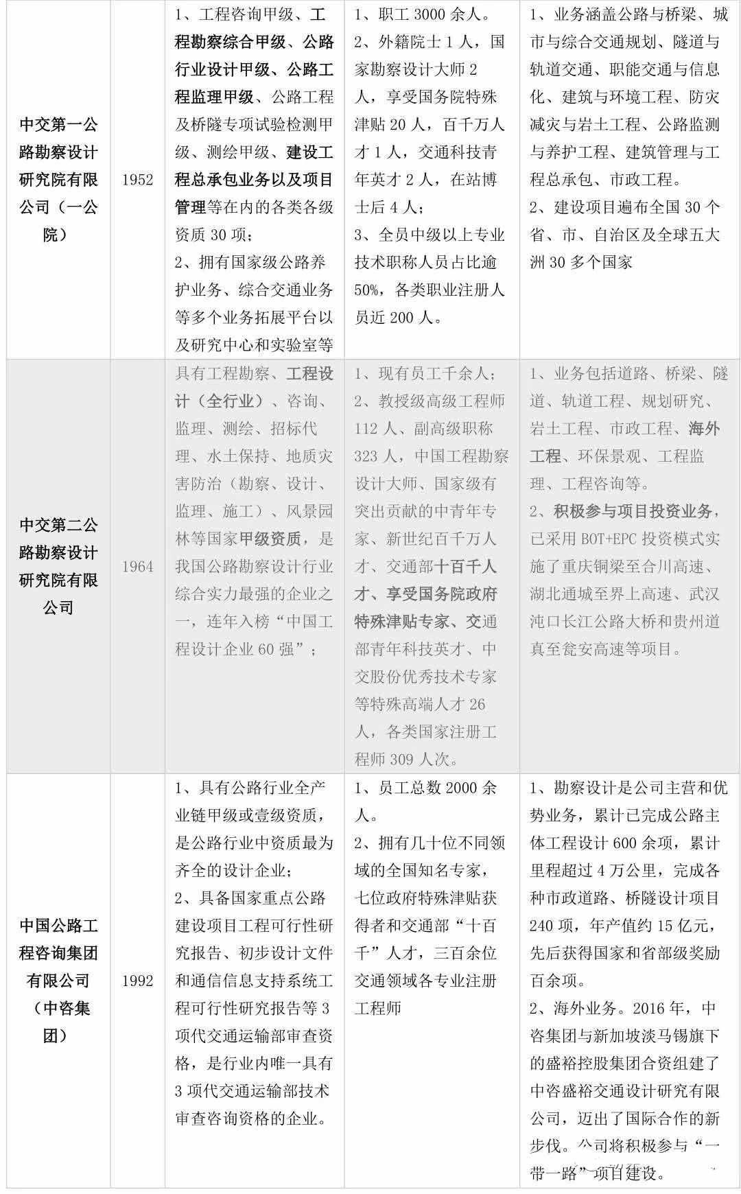 表1:中交體系下與公路勘察設(shè)計(jì)相關(guān)的全資子公司基本情況