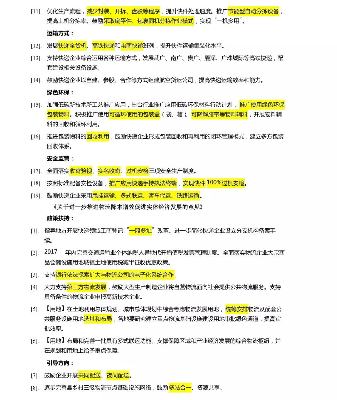 (2)快遞發(fā)展方向政策也給出了指導(dǎo),主要為以下幾個方面: