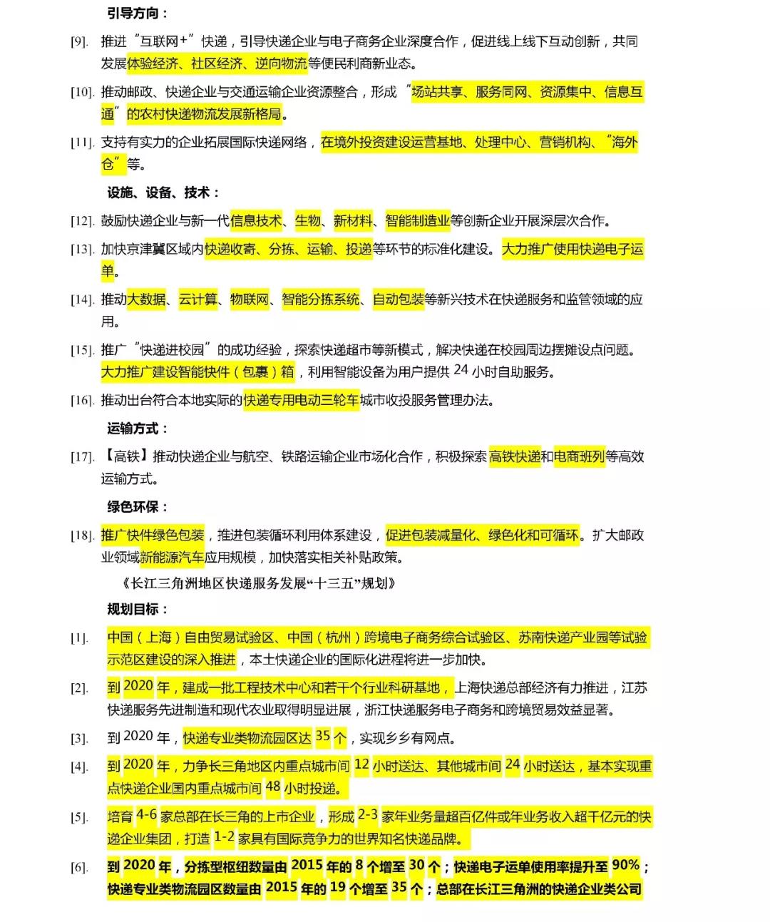 (4)到2020年,長三角地區(qū),分揀型樞紐數(shù)量由2015年的8個增至30個;快遞電子運單使用率提升至90%;快遞專業(yè)類物流園區(qū)數(shù)量由2015年的19個增至35個。