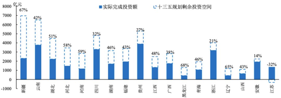 中西部省份十三五公路剩余規(guī)劃空間較大,江蘇、安徽、浙江已經(jīng)超額或者大幅完成十三五目標(biāo)