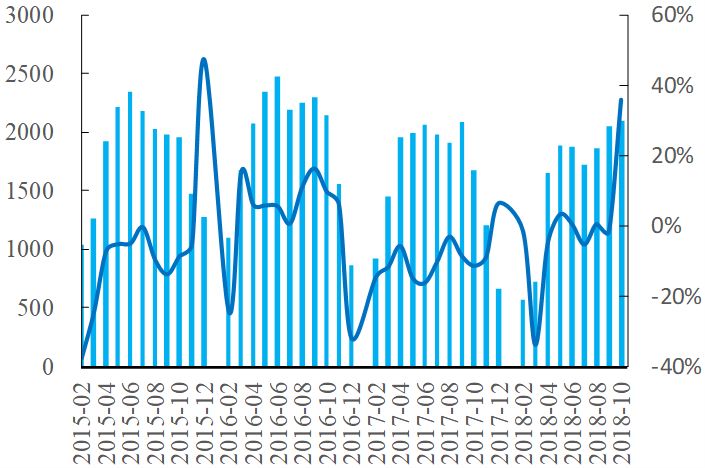 從中觀層面看,2018Q4季度基建投資筑底回升,2018年年底-2019年年初政策也十分密集,不斷催化基建行業(yè)發(fā)展,如經(jīng)濟(jì)工作會(huì)議、兩會(huì)、交通和鐵路下年投資計(jì)劃、減稅預(yù)期、雄安和長(zhǎng)三角區(qū)域政策、PPP條例、一帶一路大會(huì)等。這些利好點(diǎn)不斷累積,預(yù)計(jì)上行延伸,2019年2-3季度單月增速將超過10%以上。