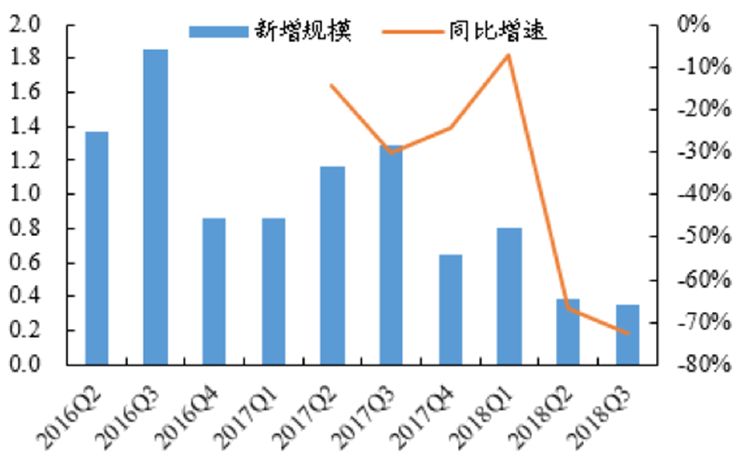 2017Q4后單季新增入庫(kù)規(guī)模持續(xù)降低(萬(wàn)億)