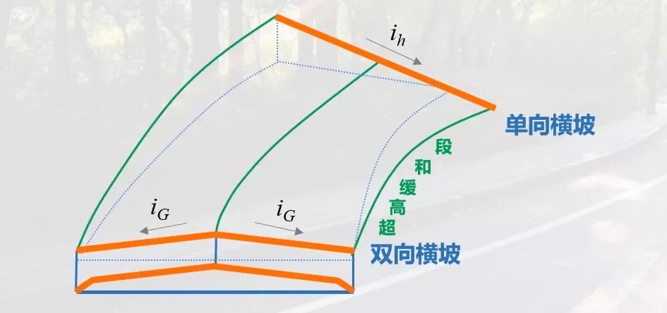 超高是指車輛在彎道上行駛,為了抵抗離心力的作用,常需要設(shè)置超高。即由直線路段的雙向橫坡路面通過超高緩和段過度到全超高的單向橫坡路段。