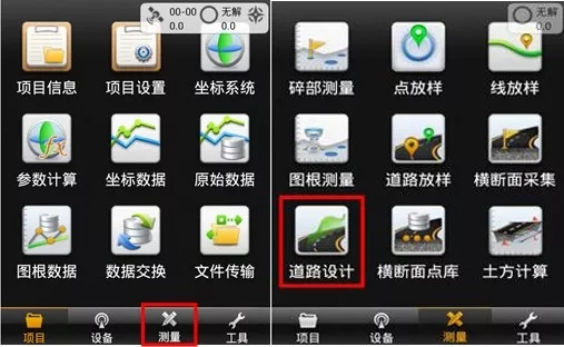 首先打開中海達(dá)RTK手簿測量軟件Hi-Survey,【測量】-【道路設(shè)計】