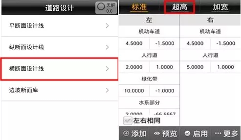 超高設(shè)在 左側(cè)機動車 板塊 錄入如下: