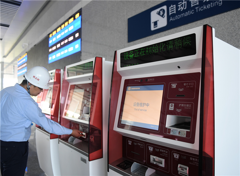 9月18日,工作人員對京雄城際北京大興站內(nèi)的自動售票機進行檢查。