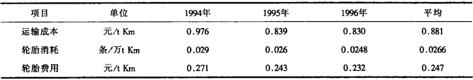| 表 3 歷年電動(dòng)輪汽車運(yùn)輸成本和輪胎消耗 |
