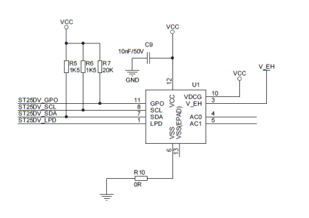 射頻閱讀器和識別器的核心在于RFID芯片。通常RFID芯片供電電壓1.8V-5.5V,帶有4K、16K或64K的E2PROM,通過片內(nèi)串行總線I2C或者射頻進(jìn)行數(shù)據(jù)傳輸。圖2為RFID芯片ST25的識別器電路原理圖。射頻識別芯片通過SCL和SDA和主控制器芯片完成通訊??刂破髟俸蜕衔粰C(jī)完成信息交換傳輸。