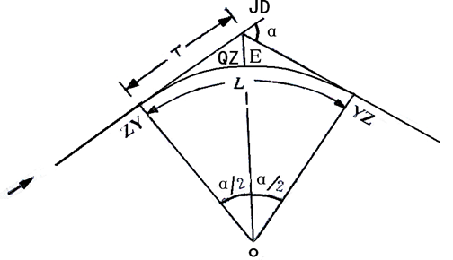 (二)圓曲線的幾何要素及主點樁號里程計算