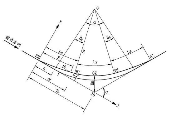 易于適應(yīng)地形,能很好地與汽車行駛軌跡相適應(yīng),使線形連續(xù)、美觀,但緩和曲線計算、布設(shè)較繁瑣