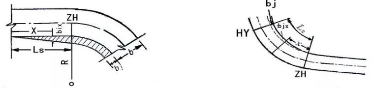 曲線路段加寬宜布置在彎道內(nèi)側(cè)