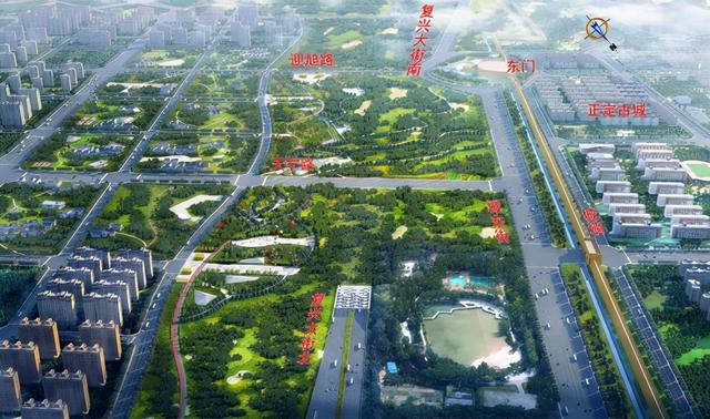 復(fù)興大街市政化改造工程,本次改造按照設(shè)計速度100公里/小時、雙向8車道城市快速路標(biāo)準(zhǔn)進(jìn)行設(shè)計建設(shè),標(biāo)準(zhǔn)路基寬度34.5米。全線新建大橋13座,總長4436米,其中滹沱河景觀特大橋2300米,泊水公園景觀大橋605米;新建地下隧道3座,總長5.02公里,其中正定古城段隧道2.51公里,白佛隧道1.23公里,學(xué)苑路隧道1.28公里;全線共設(shè)置互通立交11座(改造現(xiàn)有互通立交3座、新建互通立交4座、預(yù)留互通立交4座),增設(shè)出入口匝道16對(預(yù)留1對)。同時,結(jié)合區(qū)域交通需求,在滹沱河北大堤至月牙路段與和平路至南二環(huán)段局部增設(shè)輔路系統(tǒng),輔路總長約5.3公里,按照設(shè)計速度50公里/小時、雙向四車道的城市主干路標(biāo)準(zhǔn)建設(shè),兩側(cè)設(shè)置人非慢行系統(tǒng)。