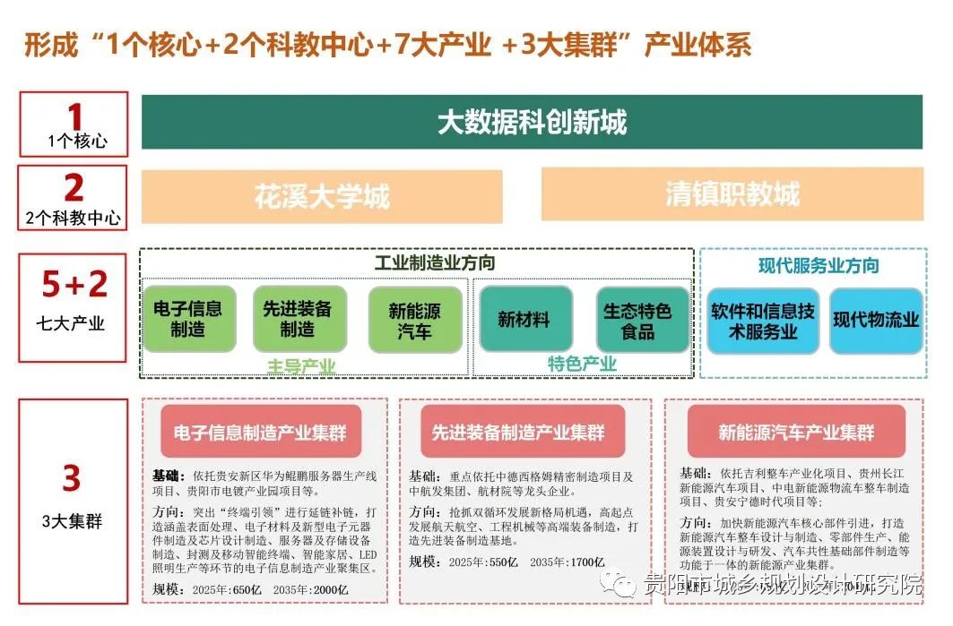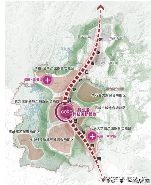 七區(qū):七個(gè)功能區(qū)‘’包括清鎮(zhèn)-金華、貴安北部新城、馬場科技新城、石板、花溪大學(xué)城五大產(chǎn)城綜合功能區(qū),以及久石麥文旅綜合功能區(qū)和高峰旅游配套功能區(qū)。