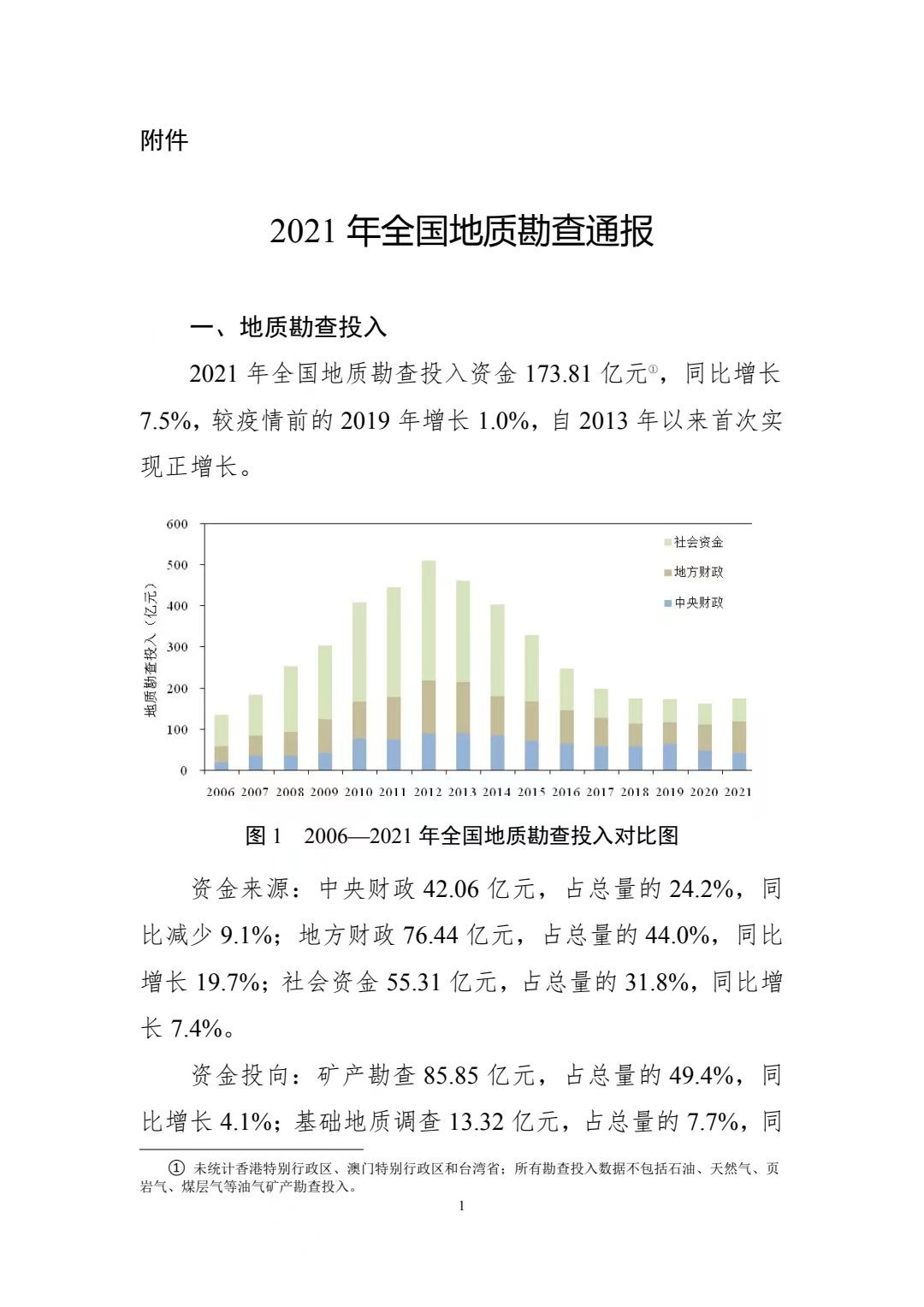 重磅!《2021年全國地質(zhì)勘查通報?》發(fā)布