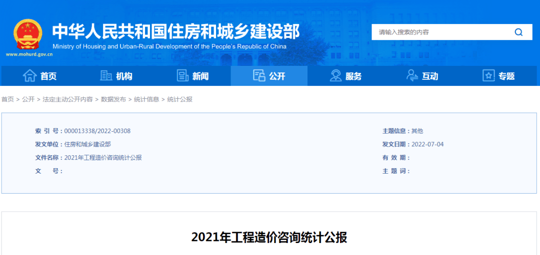 住建部發(fā)布2021年工程造價(jià)咨詢統(tǒng)計(jì)公報(bào)