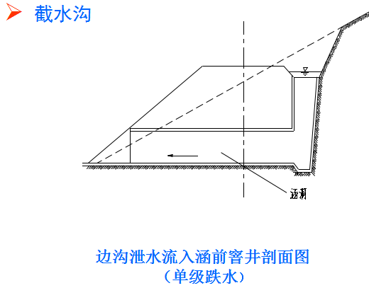 4.跌水與急流槽:跌水與急流槽是路基地面排水溝渠的特殊形, 用于陡坡地段,溝底縱坡可達45度。在陡坡或深溝地段設置的溝底為階梯,水流呈瀑布式跌落的溝槽稱作跌水。跌水的作用是在較短的距離內(nèi),降低水流流速,消減水流能量,進而防止沖刷(用于坡度大于10%,水頭高差大于1.0m的陡坡地段)