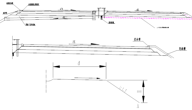 倒虹吸的設置往往是因路基橫跨原有溝渠,且溝渠水位高于路基設計標高,不能按正常條件下設置涵洞,此時采用倒虹吸是可行的方案之一。 渡水槽的設置是因原水道與路基設計標高相差較大,如果路基兩側(cè)地形有利,或當?shù)卮_有必要,可設簡易橋梁,架設水槽或管道,從路基上部跨越,以勾通路基兩側(cè)的水流。