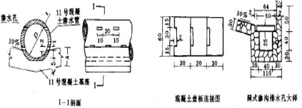 填石滲溝(盲溝)流量不大,滲溝不長。縱坡一般采用5% ;管式滲溝適用地下引水較長的地段,縱坡一般不大于1% ;洞式滲溝流量較大,缺乏水管。有條件采用較大縱坡。