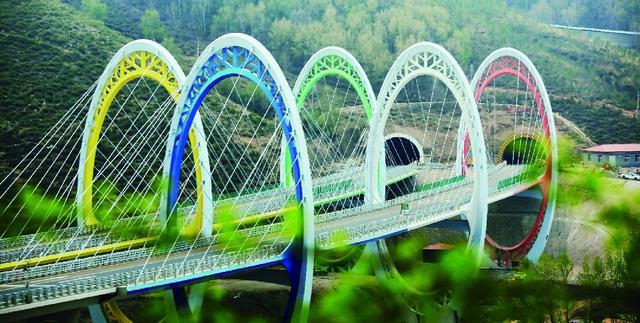 沿線地形復雜,施工場地受限,橋梁、隧道數(shù)量多,橋隧比達56%,局部路段橋隧比高達90%以上,其中松山特長隧道長9.2km,為華北地區(qū)最長公路隧道。