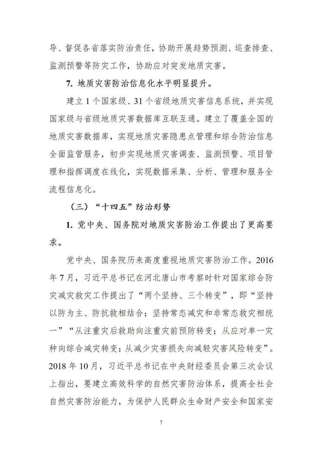 《全國地質(zhì)災(zāi)害防治“十四五”規(guī)劃》已經(jīng)2022年第7次部長辦公會審議通過,現(xiàn)印發(fā)給你們,請認(rèn)真組織實施,確保實現(xiàn)各項目標(biāo)和任務(wù)。