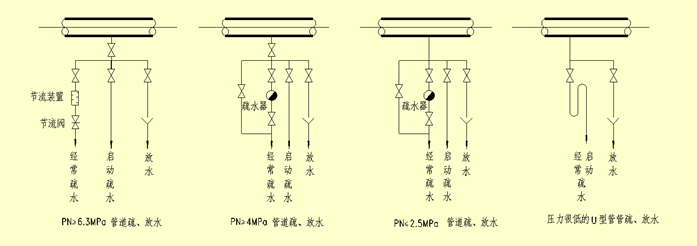 PN≥6.3MPa:管道經(jīng)常疏水宜裝設(shè)節(jié)流裝置或疏水閥,節(jié)流裝置后的閥門用節(jié)流閥;