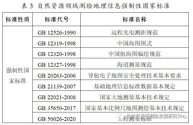 自然資源部組建后,測繪地理信息標(biāo)準(zhǔn)成為自然資源標(biāo)準(zhǔn)體系的重要組成部分。截至2021年底,自然資源領(lǐng)域測繪地理信息相關(guān)標(biāo)準(zhǔn)中僅有9項(xiàng)強(qiáng)制性國家標(biāo)準(zhǔn)。