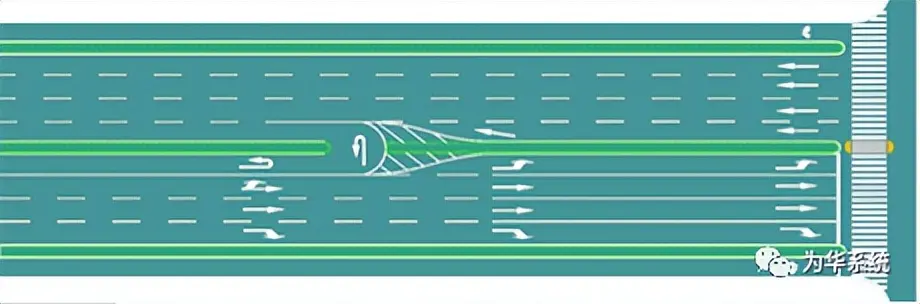 圖6 縮小機(jī)非分隔帶寬度并縮小車行道寬度設(shè)置右轉(zhuǎn)專用道