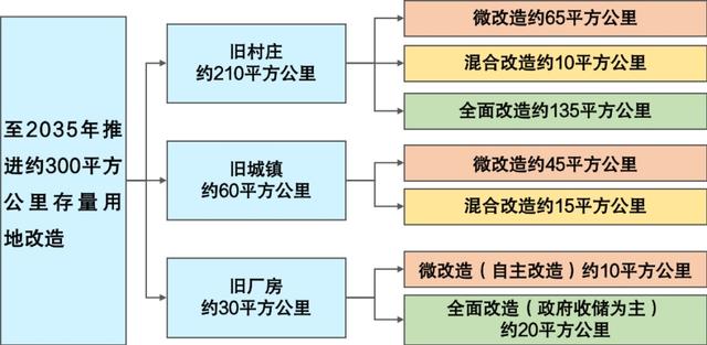 《專(zhuān)項(xiàng)規(guī)劃》統(tǒng)籌新增用地與存量用地資源配置,規(guī)劃至2025年,累計(jì)推進(jìn)城市更新約130平方公里(含城中村改造70平方公里);至2030年,累計(jì)推進(jìn)城市更新約230平方公里(含城中村改造120平方公里);至2035年累計(jì)推進(jìn)城市更新約300平方公里(含城中村改造155平方公里),通過(guò)微改造、混合改造、全面改造多種方式并舉,推動(dòng)低效存量土地的盤(pán)活再利用。