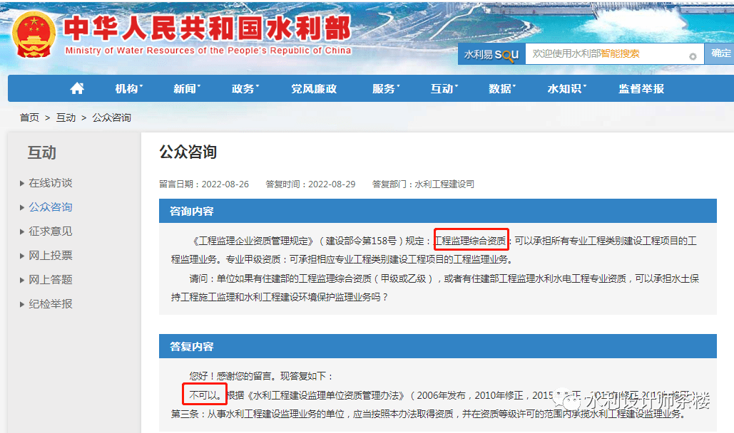 水利部權(quán)威回復(fù):住建部頒發(fā)的綜合監(jiān)理、水利監(jiān)理資質(zhì)不得從事水利工程監(jiān)理!