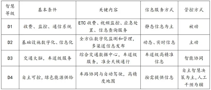 表2 高速公路智慧化分級表(引自《甘肅省智慧高速公路建設(shè)技術(shù)指南》)