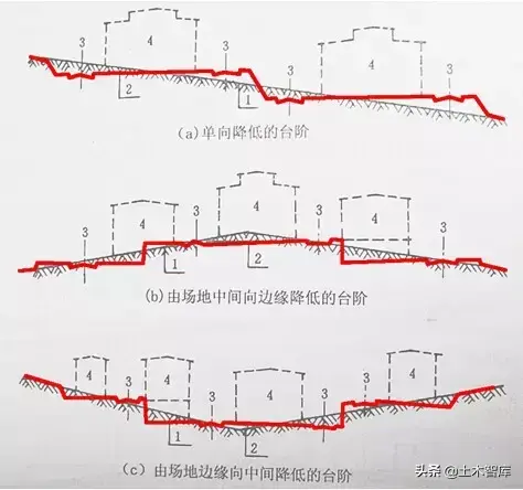臺(tái)階高差一般以3.0——4.0m為宜(最高4.0——6.0m),以免道路坡道過(guò)長(zhǎng)、交通組織困難并增加擋土墻等支擋結(jié)構(gòu)工程量。