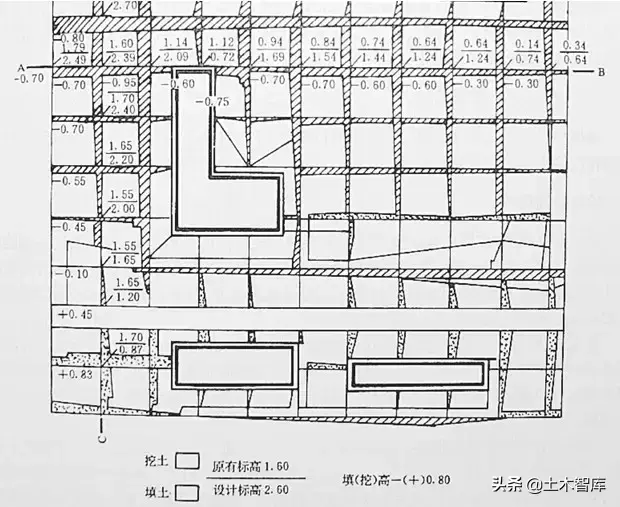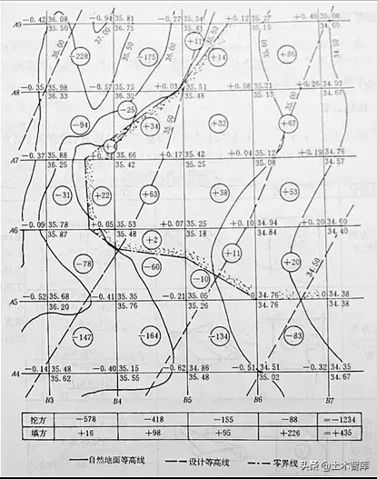 十五、施工高程的確定、標(biāo)注零界線(xiàn)、土方量的計(jì)算: