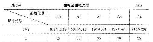 (1)圖幅及圖框尺寸應符合表2-4的規(guī)定