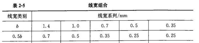 2)每張圖上的圖線線寬不宜超過3種?;揪€寬((b)應根據(jù)圖樣比例和復雜程度確定。線寬組合宜符合表2-5的規(guī)定.