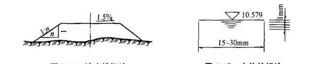 (14)當坡度值較小時,坡度的標注宜用百分率表示,并應標注坡度符號。坡度符號應由細實線、單邊箭頭以及在其上標注百分數(shù)組成。坡度符號的箭頭應指向下坡。當坡度值較大時,坡度的標注宜用比例的形式表示,例如I:n(圖2-16)。