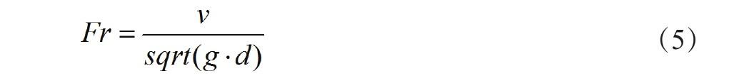 (2)確定管道尺寸。根據(jù)最大流量和施工要求,確定排水管道的直徑或斷面形狀[8]。在確定管道尺寸時(shí),需要考慮管道自清潔速度、懸沙能力和維護(hù)性等因素。管道的自清潔速度是指在正常流量下,管道內(nèi)部能夠?qū)⒎e聚的污物、雜物和沙粒沖刷走的速度,采用Froude數(shù)可判定管道自清潔度,其計(jì)算公式見式(5)。