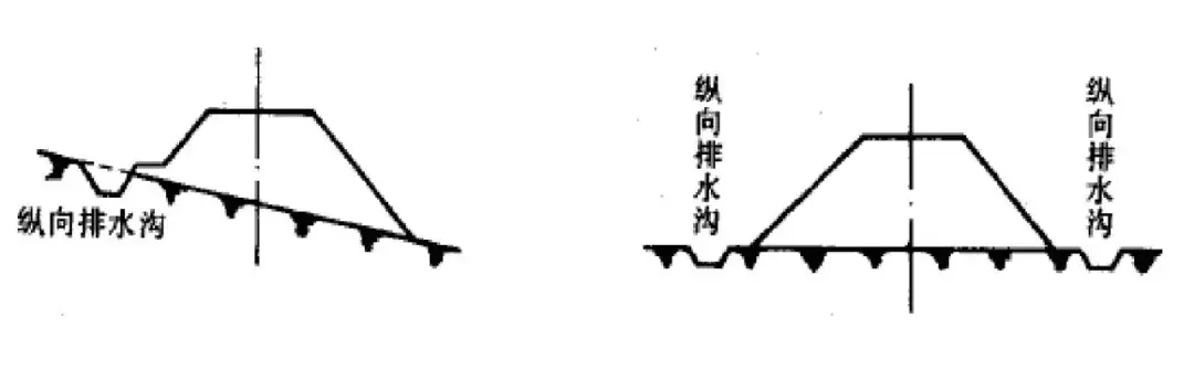 通過修建和維護(hù)地面排水系統(tǒng),可將地面水迅速的排出路基范圍,從而避免由于地面積水下滲和流動沖刷而造成的路基病害。地面排水系統(tǒng)對于細(xì)粒土填料的路基影響尤其明顯;粗粒土填筑的路基如級配不適宜時,也會出現(xiàn)相應(yīng)病害。