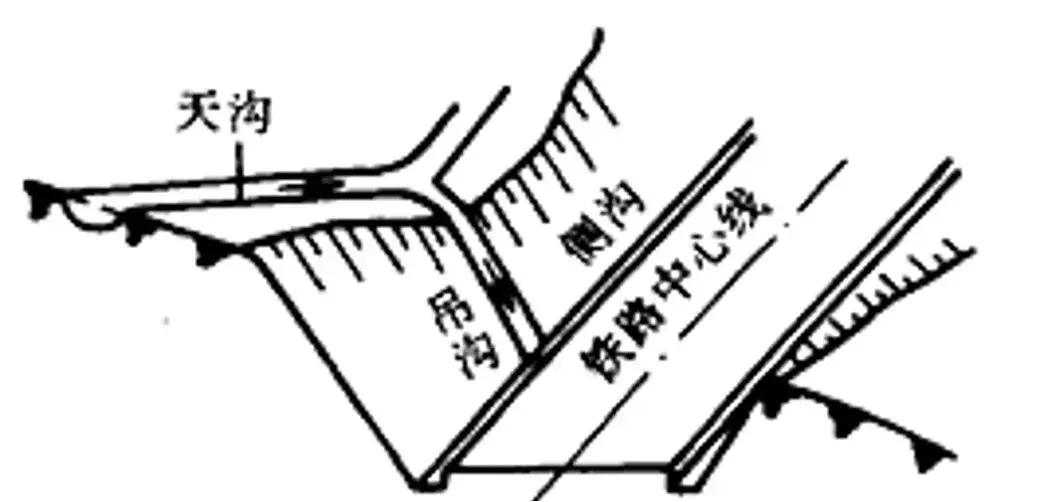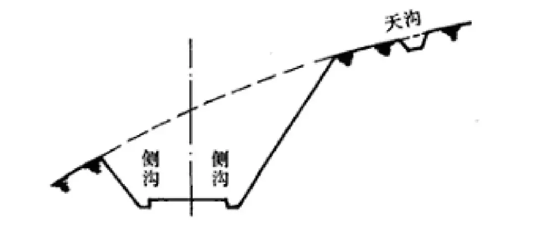 天溝設(shè)于路塹塹頂,用以排除山坡迎水方向流向路塹的地面水。路塹頂部無棄土堆時,天溝內(nèi)邊緣至塹頂距離不宜小于5m;當(dāng)溝內(nèi)進(jìn)行加固防滲時不應(yīng)小于2m。