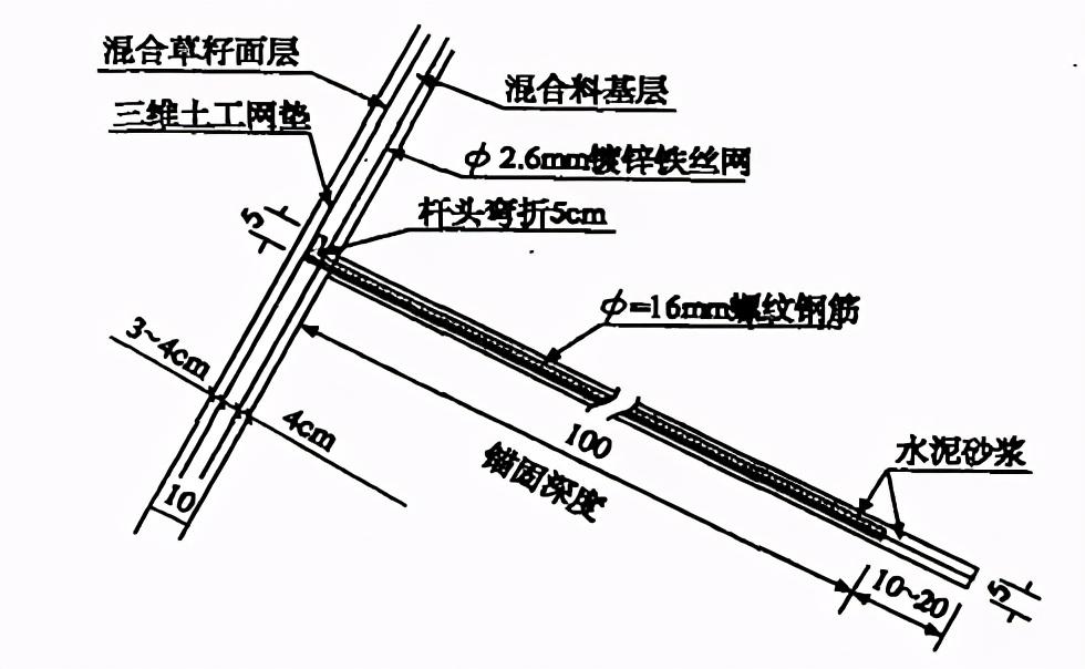 有錨固植草防護(hù)邊坡示意圖