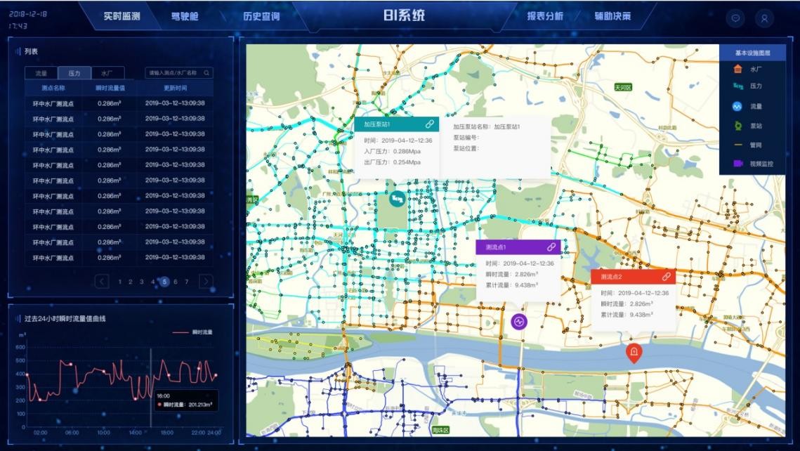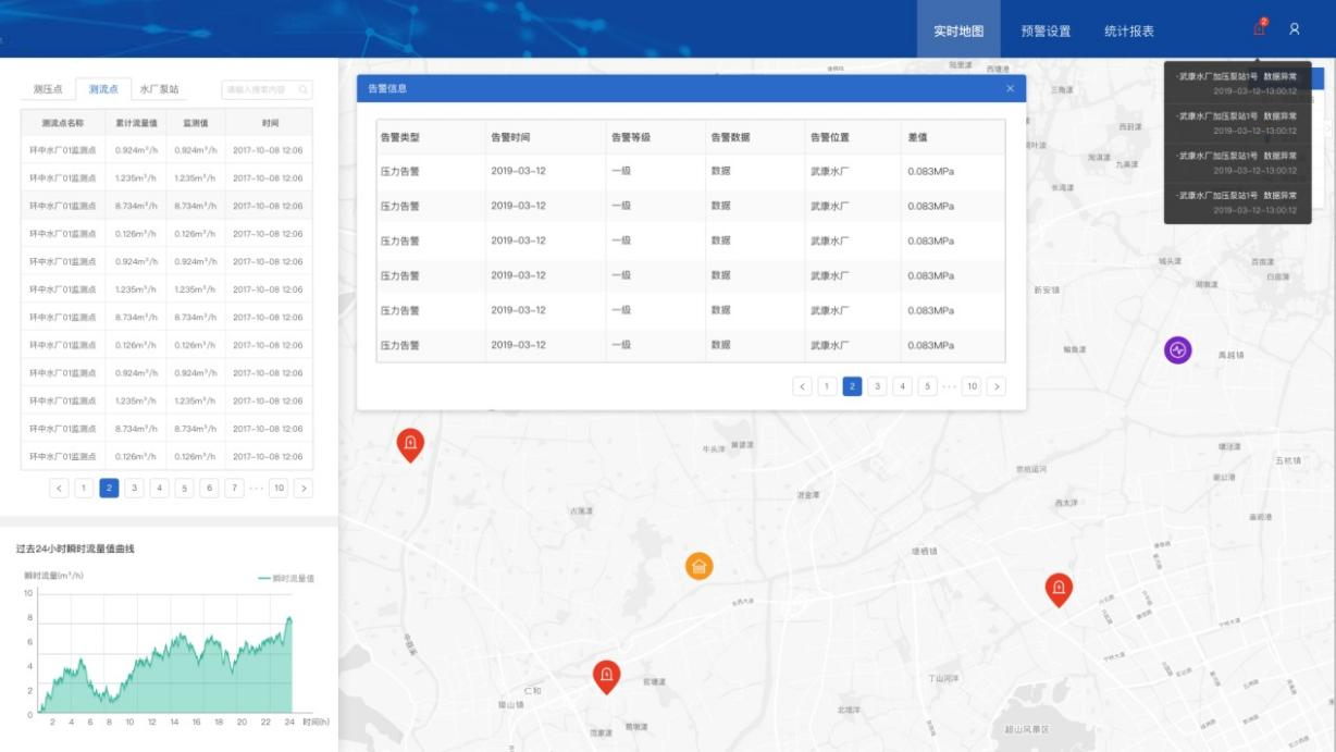 安裝物聯(lián)感知設(shè)備,對(duì)監(jiān)測(cè)點(diǎn)數(shù)據(jù)如壓力、流量、水質(zhì)等進(jìn)行實(shí)時(shí)采集、在線監(jiān)測(cè)。實(shí)現(xiàn)生成監(jiān)測(cè)點(diǎn)歷史監(jiān)測(cè)數(shù)據(jù)相關(guān)報(bào)表、趨勢(shì)曲線等。