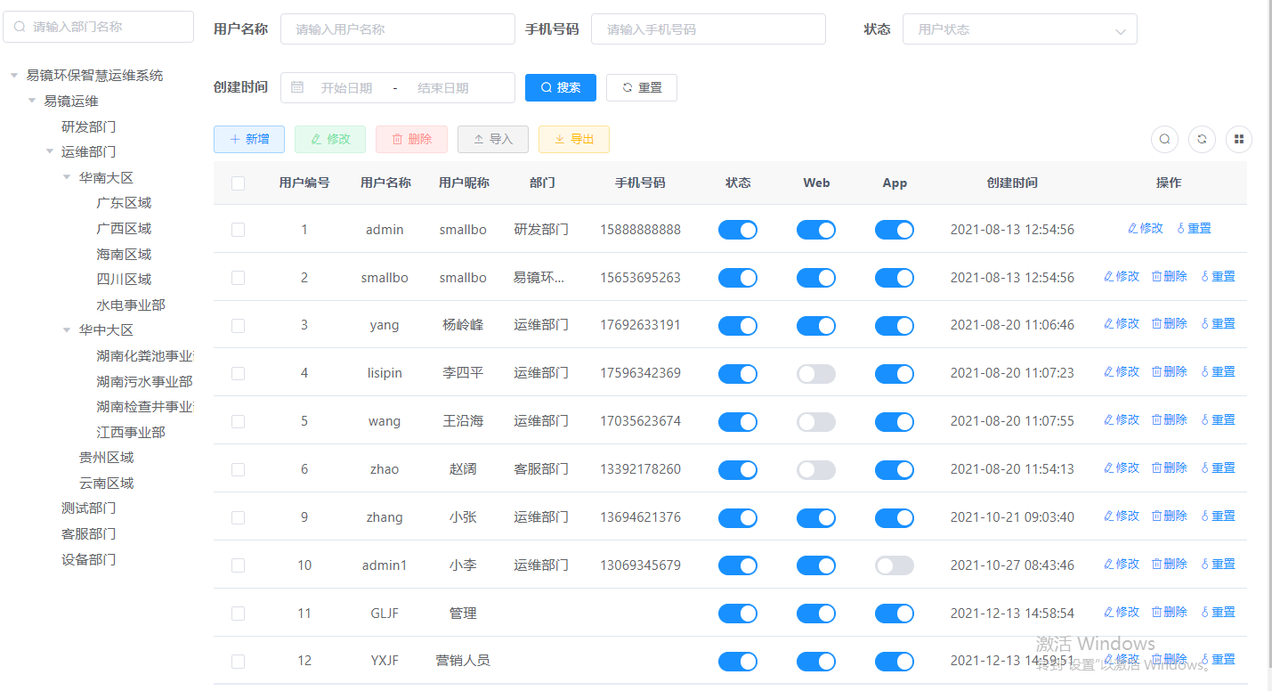 管理員可以通過用戶模塊管理各個(gè)部門的用戶,添加用戶角色,并設(shè)置權(quán)限和數(shù)據(jù)權(quán)限。還可進(jìn)行部門管理。
